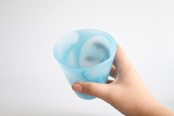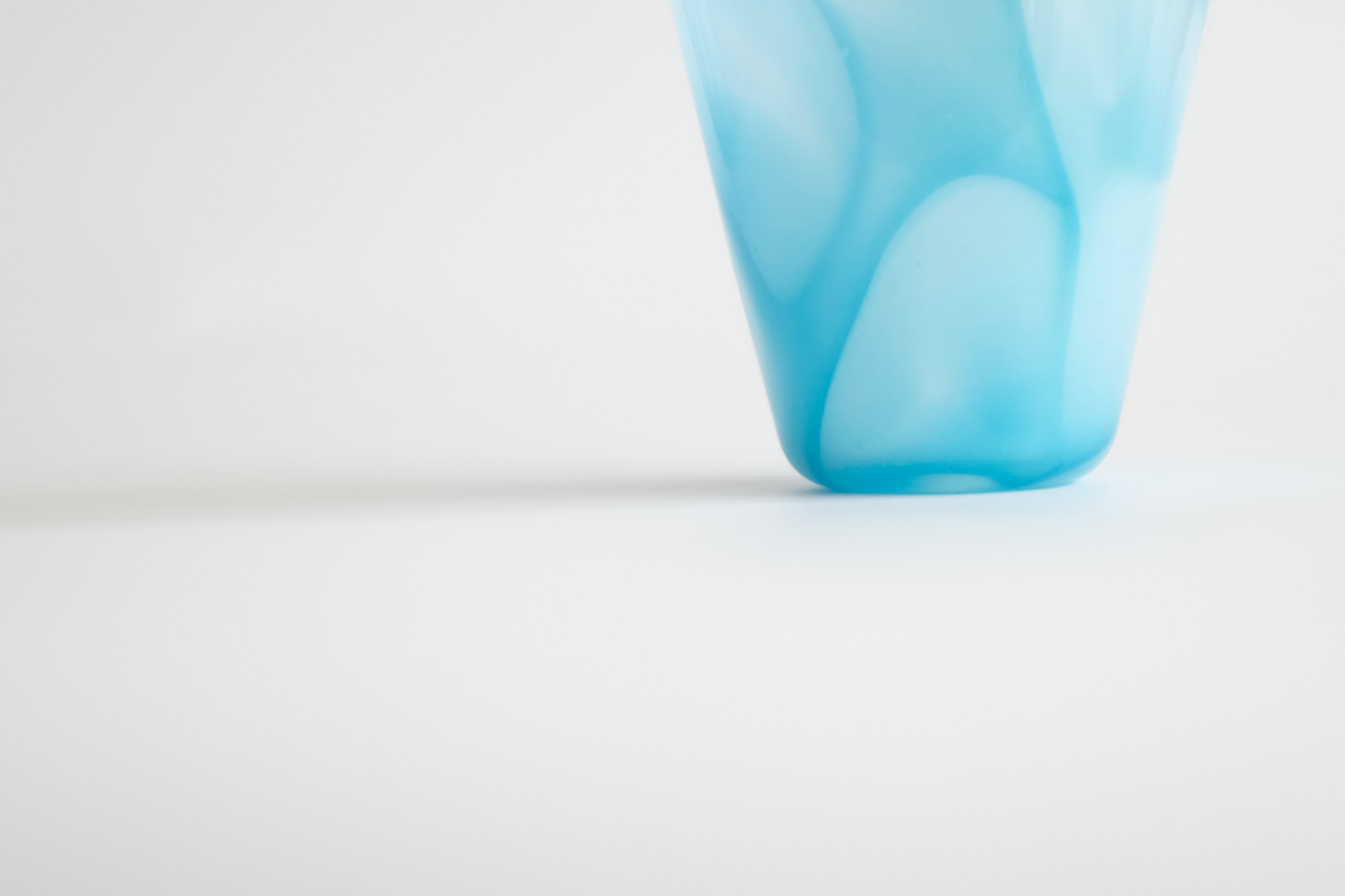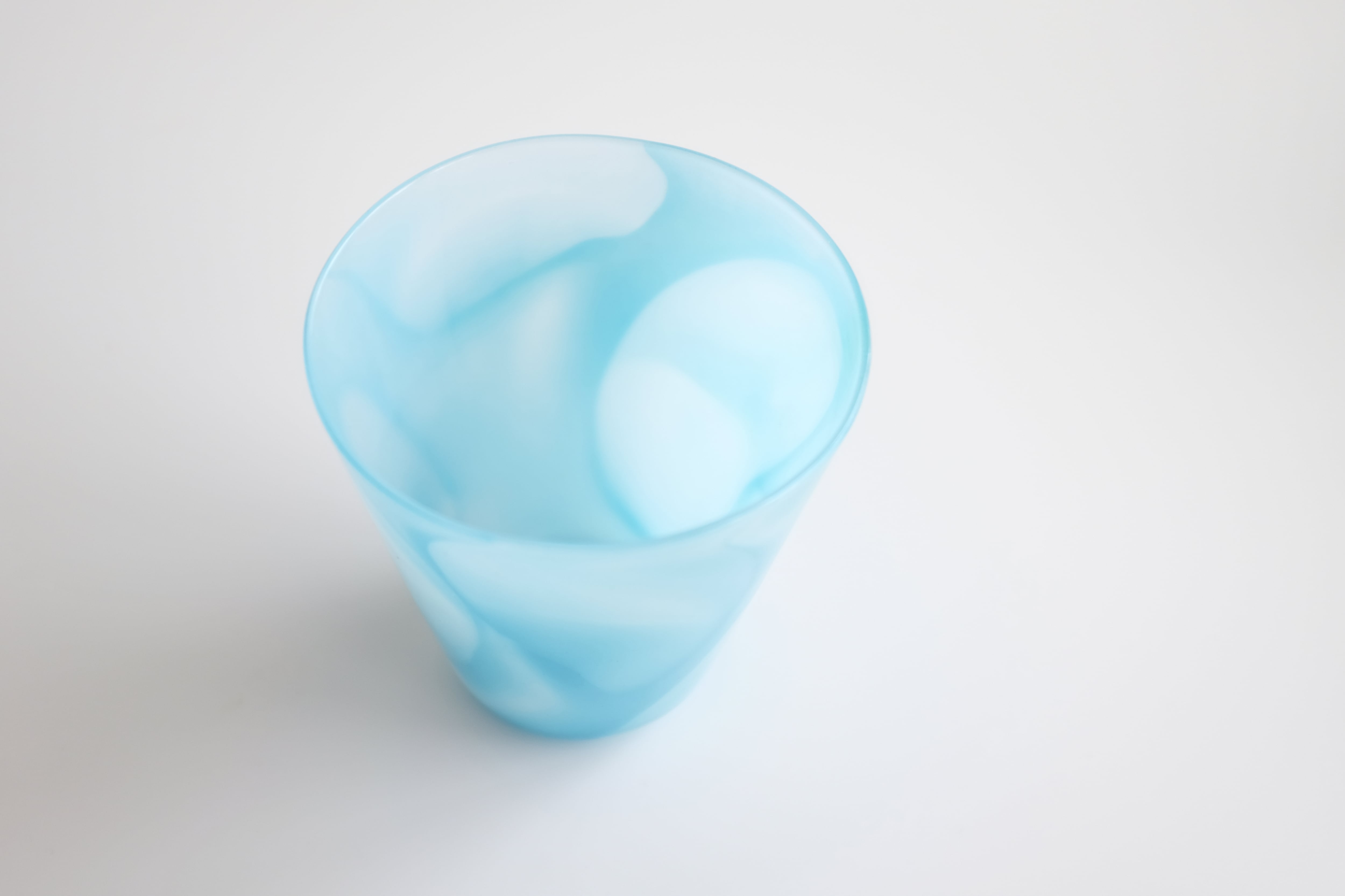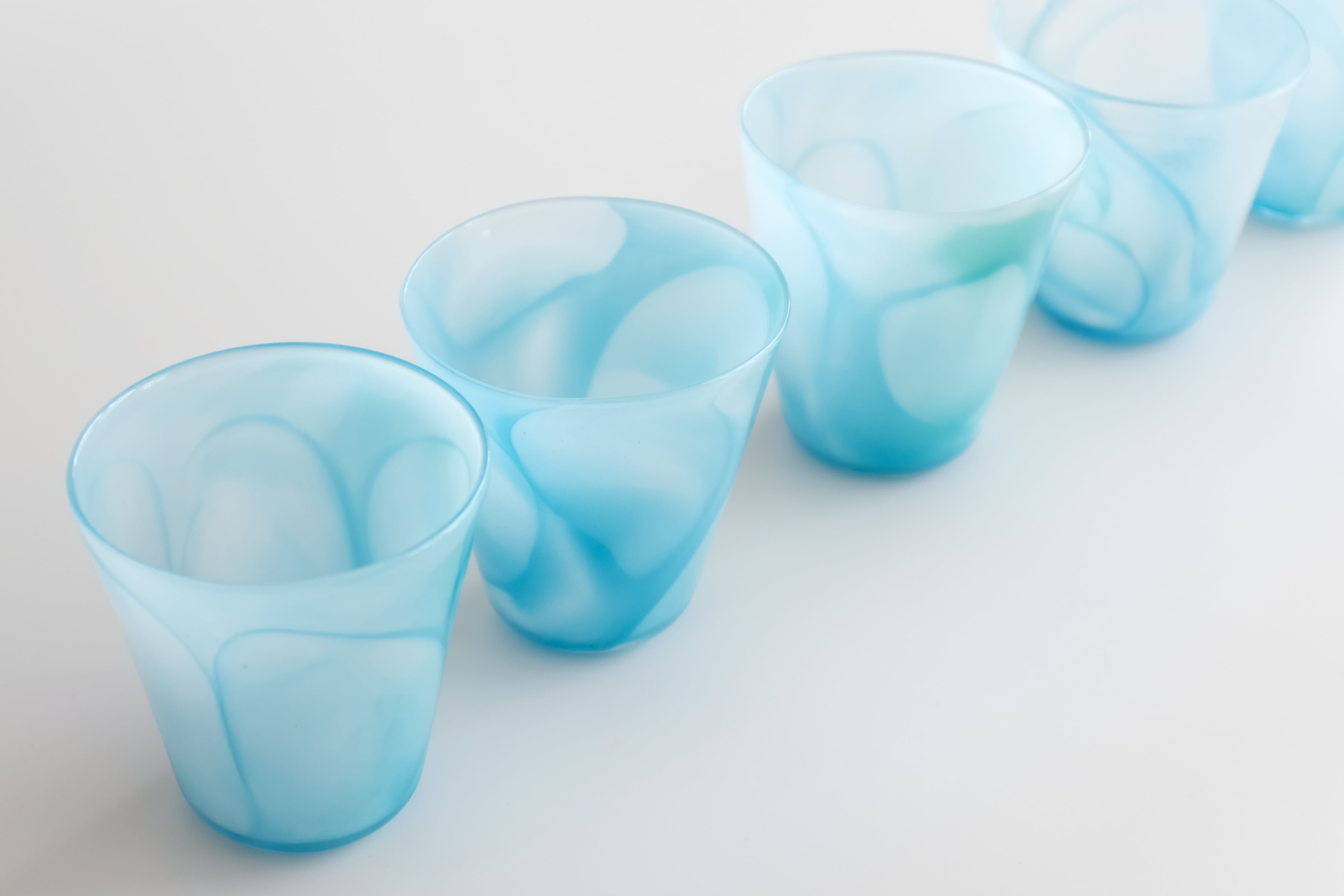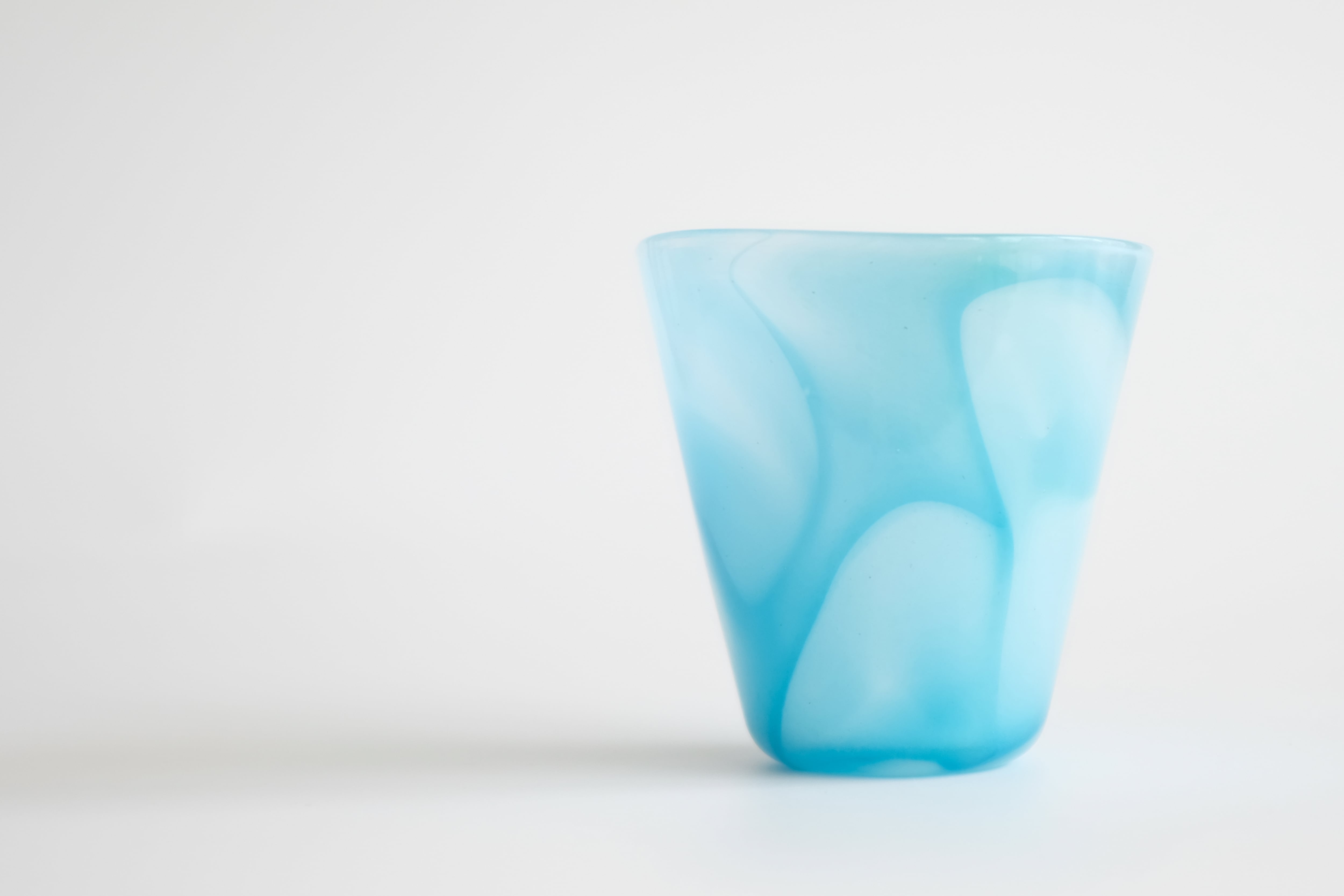 水色と緑色の色のにじみ、グラスの口元は波のようにゆらめくような形状になっています。
