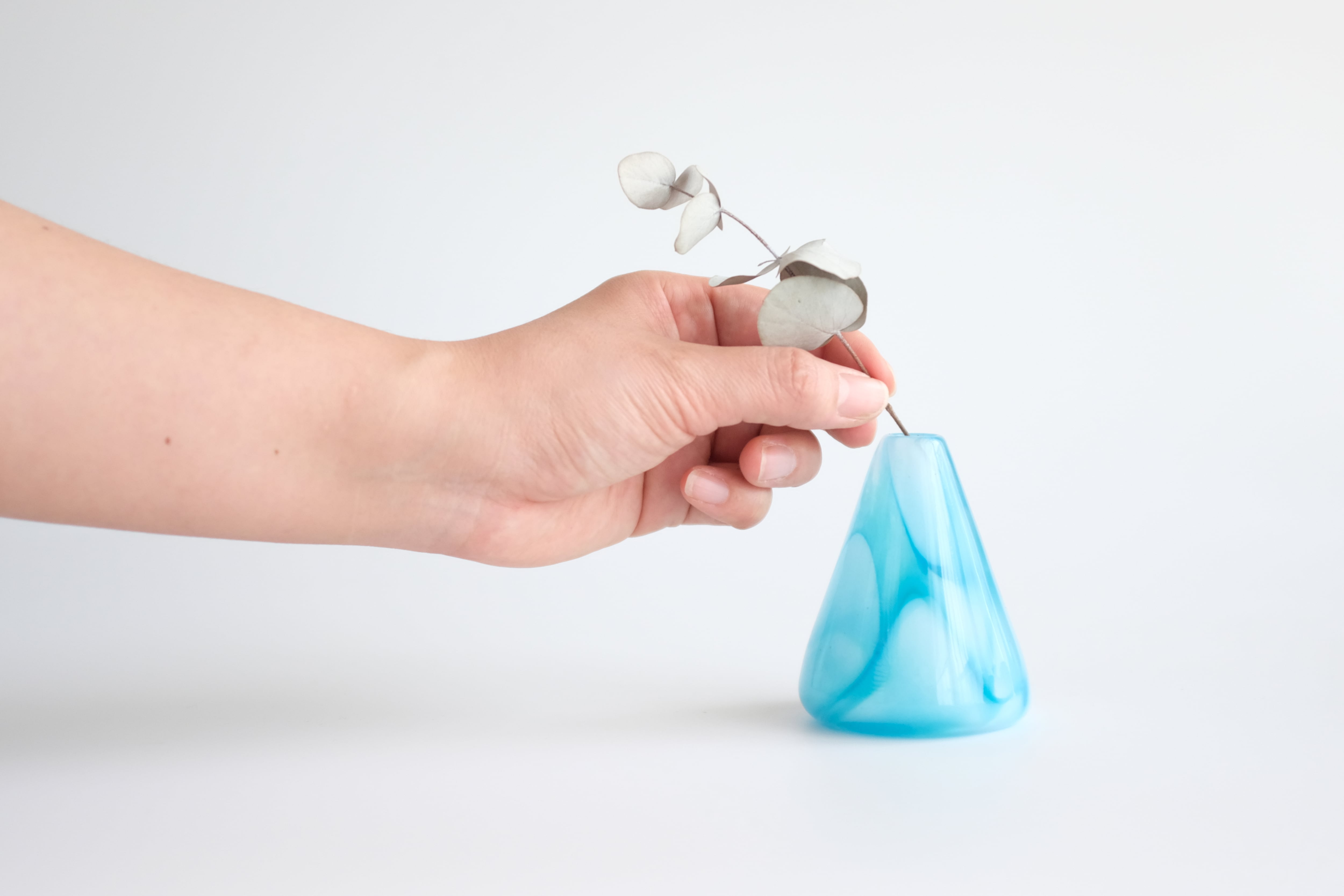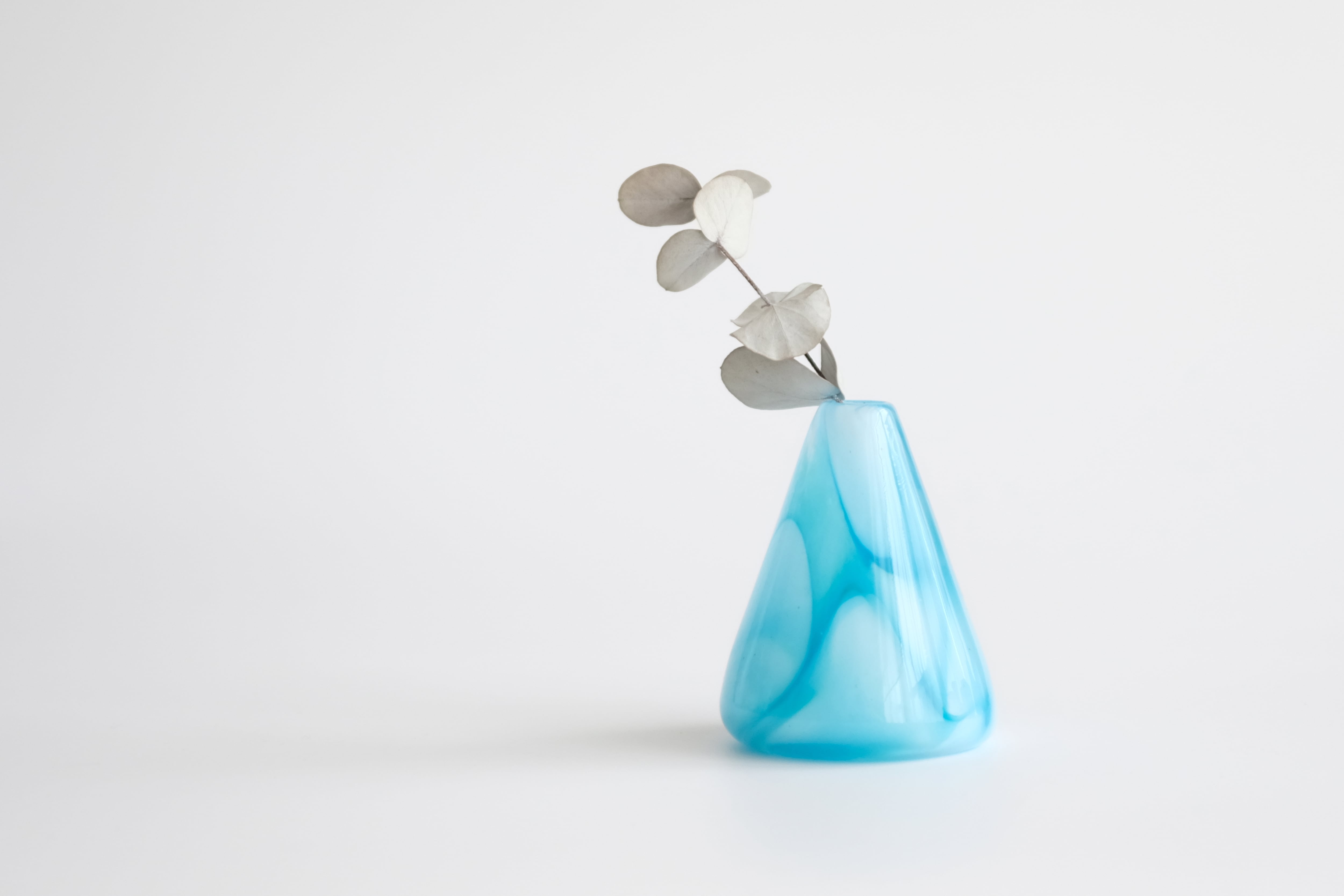 透明感のあるブルーは、花を一輪添えるだけで空間をぱっと明るくし、